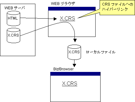 Internet ExplorerやFireFoxなどのWebブラウザでCRSファイルへのハイパーリンクをタップした場合、そのCRSファイルはWebブラウザによってダウンロードされ、そのファイルがBiz/Browserの起動時に渡されます。
