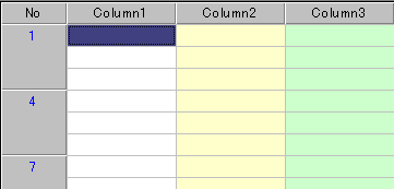 対応するヘッダセルは、FlexHeaderと同様にセル値を表示したり行番号を表示することができます。また、横方向のスクロールが固定され、常に左側に表示されカーソルを置くことはできません。